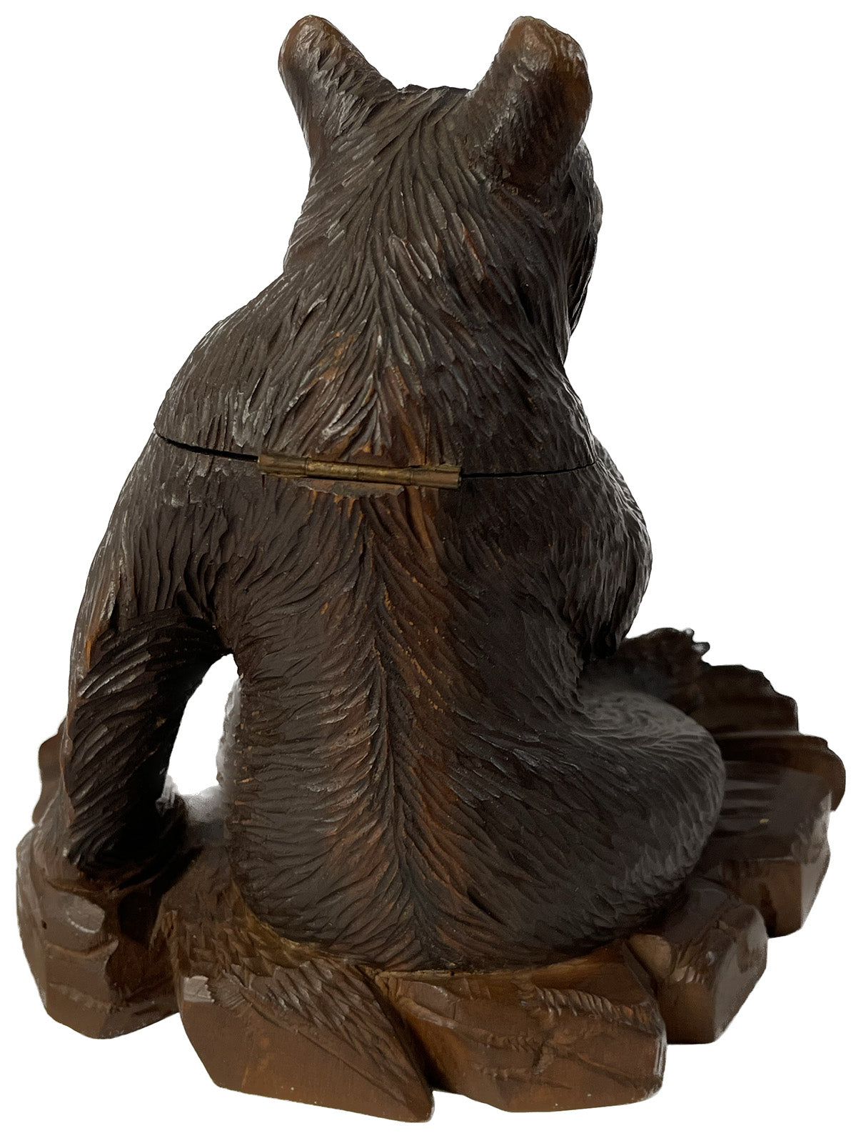 Late 19th century carved Black Forest bear with hinged head opens that opens to glass inkwell.