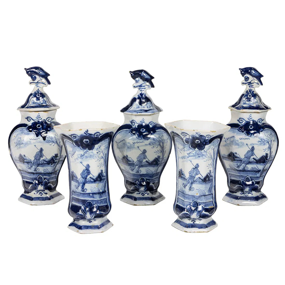 Featuring a bronze bust by the sculptor Jean-Baptiste Clesinger (French, 1814 - 1883) produced by the Barbedienne foundry, this beautiful garniture in French rouge griotte marble is made of a central clock flanked by two carved tazzas.