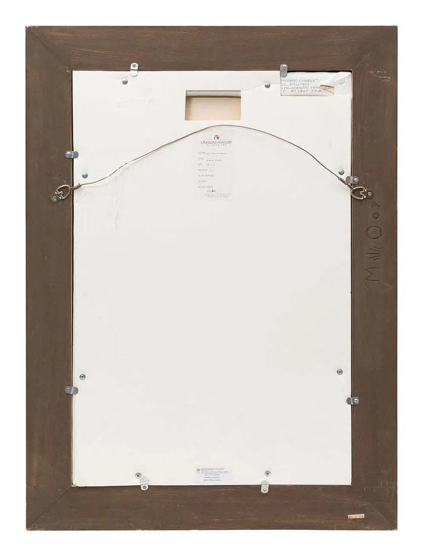 In Modern Cowboy, Gary Ernest Smith presents a contemporary figure rooted in tradition yet unmistakably of the present. Standing confidently against a warm, atmospheric ground, the cowboy’s relaxed stance and direct gaze convey independence, endurance, and quiet resolve. Smith’s restrained palette and textured brushwork emphasize character over anecdote, elevating the subject from portrait to archetype.