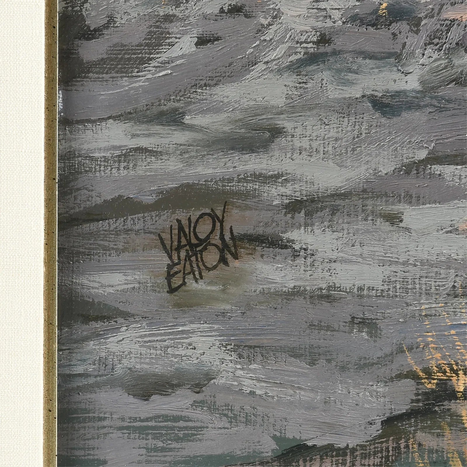 In Plowed Field, Valoy Eaton focuses on the quiet geometry and texture of worked land. Thick, energetic brushstrokes articulate the furrows and clods of freshly turned soil, while subtle shifts of color suggest lingering moisture and light. The broad foreground dominates the composition, emphasizing physical proximity to the earth and the labor embedded within it.