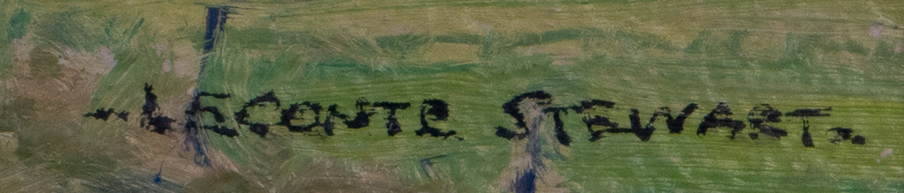 Small studies like this were often painted quickly on location, later informing larger works or serving as complete compositions in their own right. In his lifelong pursuit to record Utah’s farms, towns, and backroads, Stewart elevated the everyday into something timeless, capturing the quiet dignity of rural life.