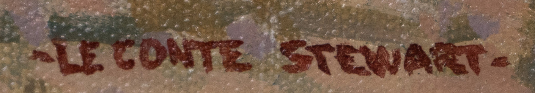 Painted on site in central Utah, this work embodies LeConte Stewart’s devotion to portraying the unvarnished character of the American West. The broad dirt road draws the viewer directly into the composition, leading toward autumn fields and the purple ridges beyond Richfield. Stewart’s muted palette of earthy greens, ochres, and violets captures both the season and the subtle beauty of rural life.